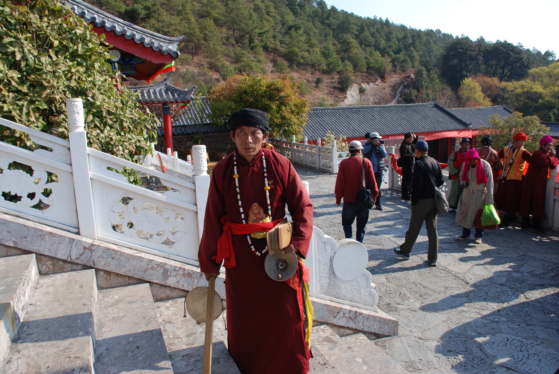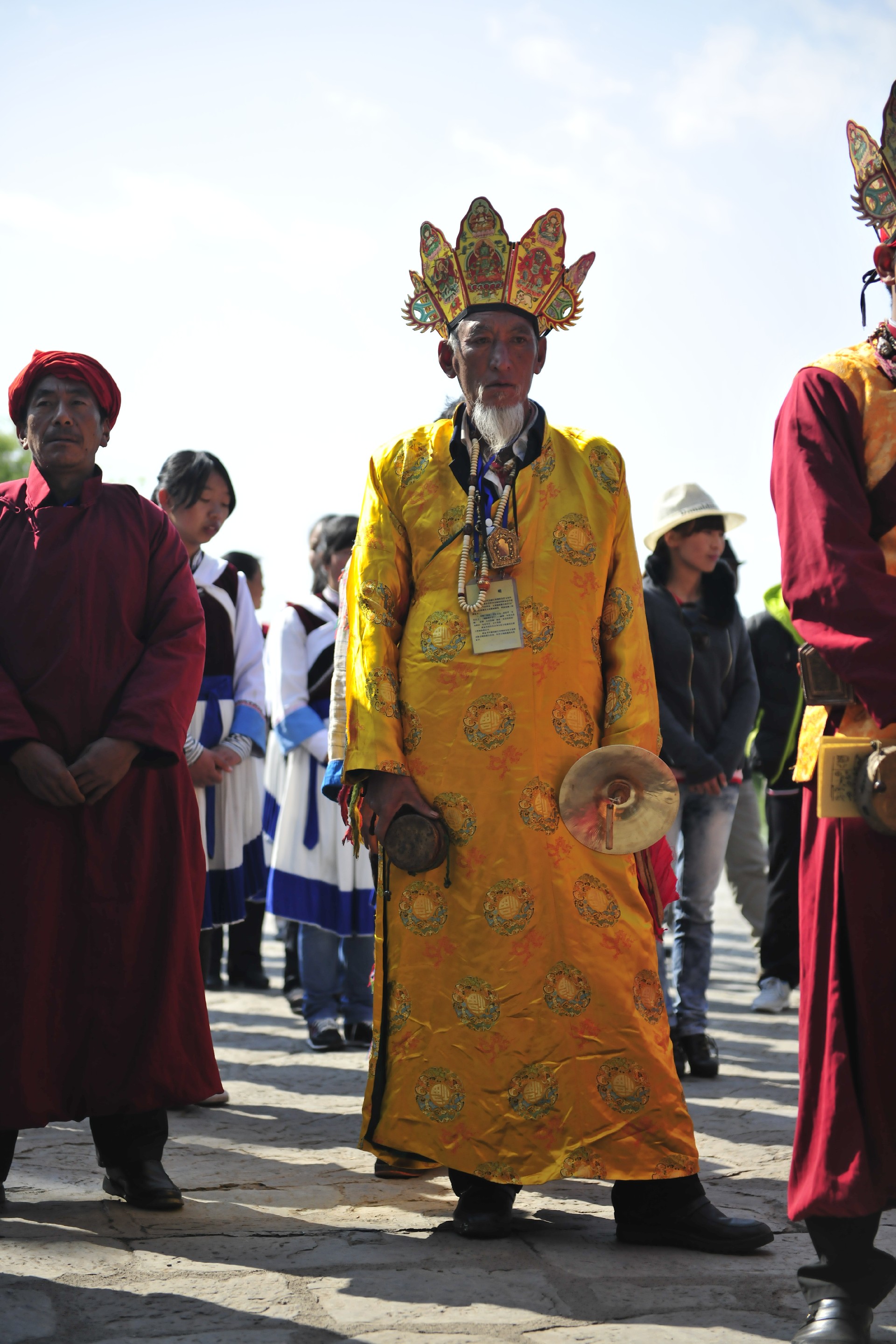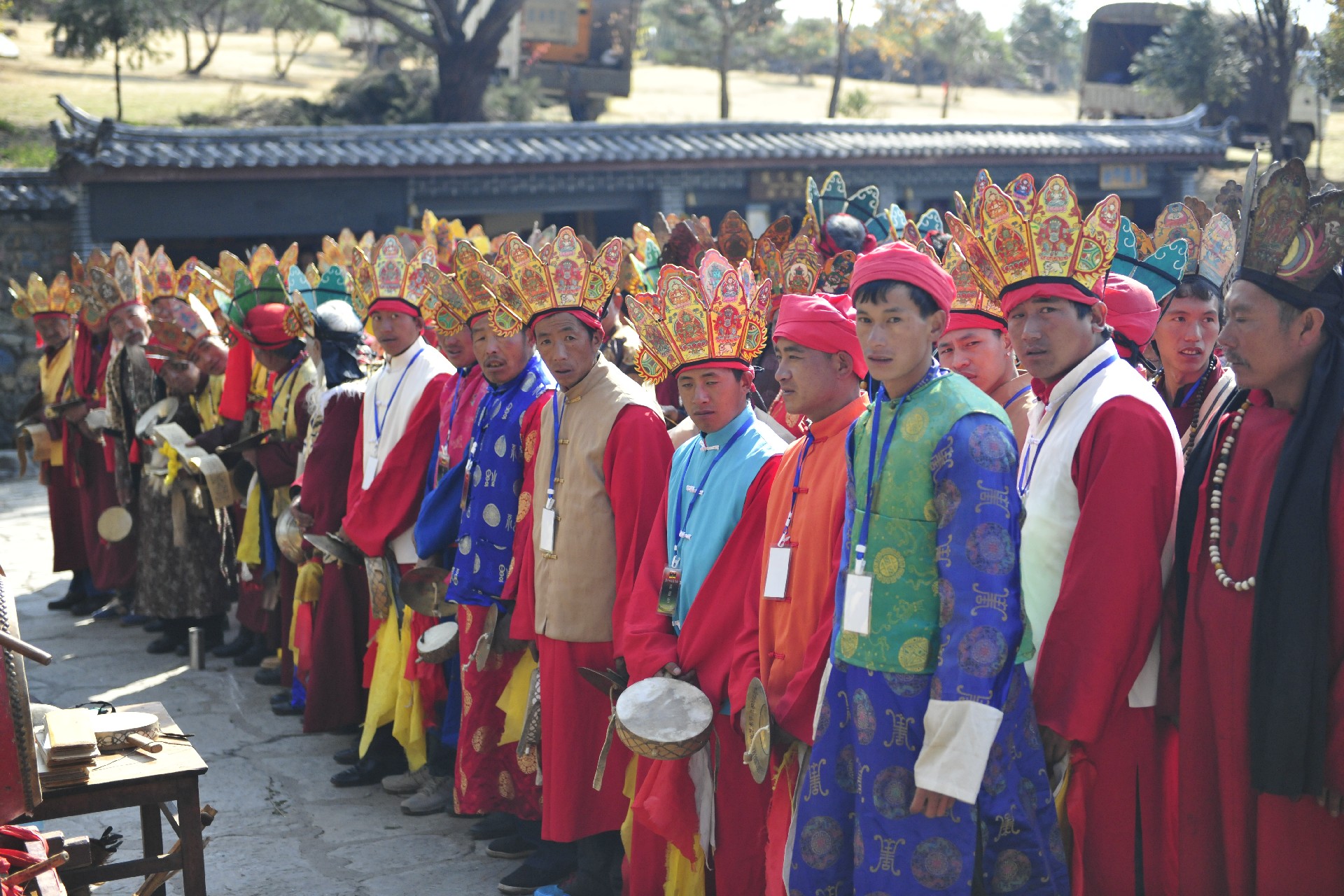 纳西族原始宗教东巴教祭司叫“东巴”(东部方言区称:达巴)。东巴(达巴)按历史发展顺序和不同职能划分为:罕东巴,为早期出现的祭司,职能是主持祭祀天地、祖先祭典和死者开丧指路;补东巴,是后来出现的驱鬼祭司,主要职责是祭神镇鬼、驱鬼除邪;盘东巴,为再后出现的占卜祭司,主要根据五行及生肖属相测算吉凶祸福。这些东巴(达巴)祭司的服饰主要有:五神冠(一种是禳鬼类仪式东巴祭司头饰,绘教主东巴什罗及战神优麻、朗究、护法神达拉弥本、多琼构布;另一种是供养神灵类仪式东巴祭司头饰,绘东、南、西、北、中五个方位的木、火、土、铁、水五行大神),铁法冠(丧葬超度仪式东巴祭司法冠,装饰于白毡法帽,插上豪猪箭、鹫翎等),挂珠( 挂于颈上以增强法力,多用砗磲桶珠,以玛瑙、蜜蜡、珊瑚、琉璃等作隔珠),饰带(东巴祭司举行仪式时佩戴,饰有大鹏神鸟铜像、嘎乌盒(小型神龛)、野猪獠牙、熊牙等)。举行不同仪式要着装相应的不同服饰。