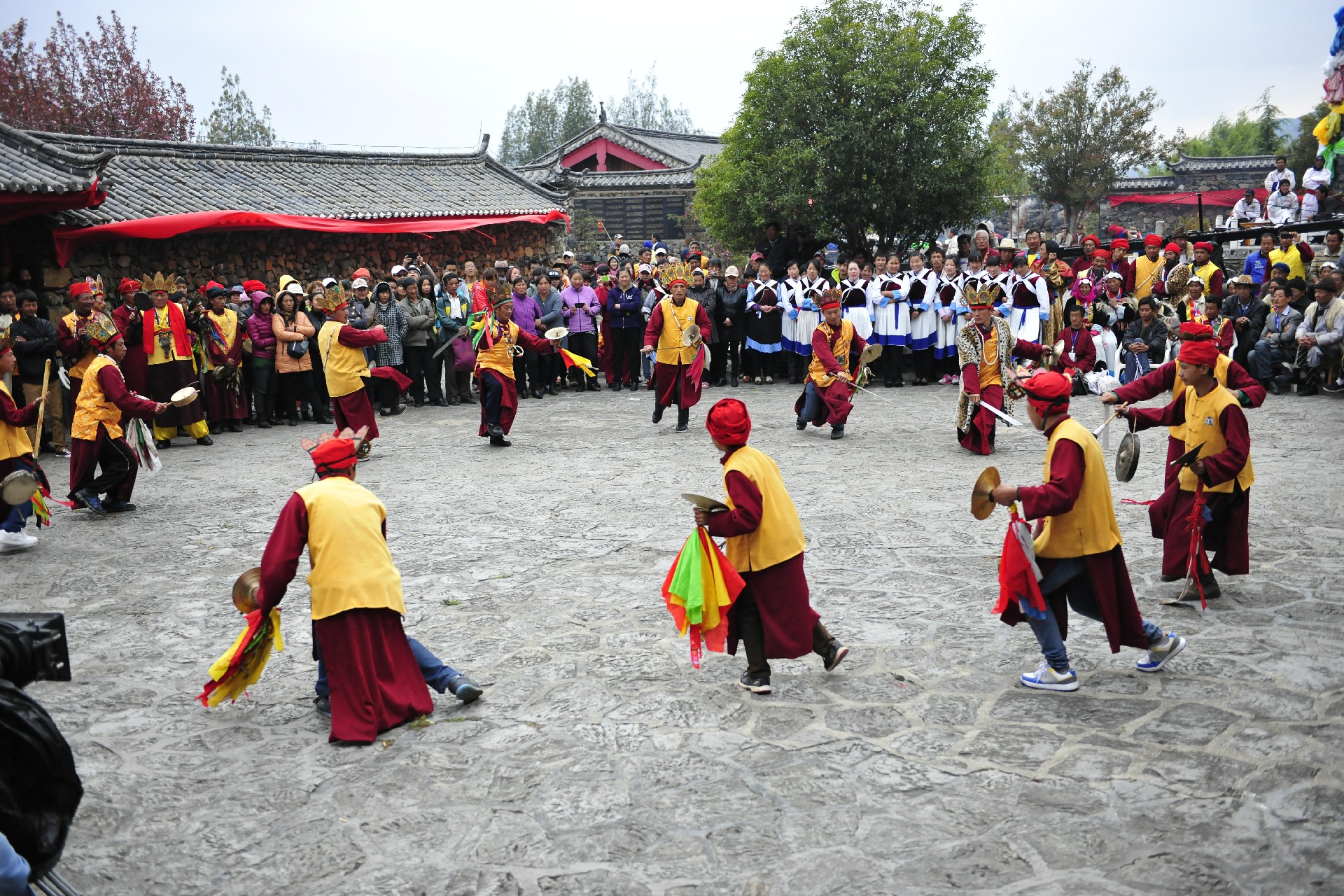 东巴舞是纳西族的古典舞蹈,是东巴教在进行各类仪式过程中,东巴祭司根据不同仪式,按照道场规则所跳的一种宗教舞蹈,表现了古代纳西人同大自然和社会邪恶势力的斗争。东巴舞来源于古代纳西言辞的社会生活,不少动作都是模拟各种动物的动作来进行的,形象十分生动。东巴舞蹈是东巴文化的重要组成部分,东巴教经典中有专门记述东巴舞蹈的舞谱《舞蹈教材》和《舞蹈来历》,这两部教程称为“蹉姆”,意为舞蹈的规范或舞蹈的调式,详细记录了60多种跳法。《东巴舞蹈》具体记述了舞蹈的起源、种类、步伐、手势、动作和功能等等,是世界上唯一的用象形文字书写的古代舞谱,是研究人类原始舞蹈的起源和早期舞谱形成的极难得的经典。在东巴教八大类的神坛祭祀道场中,除了“祭天类”的祭祀道场外,其它的七大类神坛祭祀道场里,皆要跳东巴舞蹈。东巴舞的起源,远古纳西先民祭祀时,东巴祭司为病者招魂,模拟一些驯服动物的动作,背着彩羽、白灰篮子,在祈求的神像面前狂舞,跳得彩羽、白灰满天飞扬。在那时先民的观念里,通过这些舞蹈奉承和献媚于术神,认为术神也会像人一样能够被舞蹈激发得欣喜若狂、哈哈大笑,取悦于神,使神感激人的祭祀,达到佑人的目的。东巴舞蹈,除了向术神祈求的舞蹈以外,还有驱斥术神的舞蹈。东巴祭司在神坛对术神跳镇慑驱斥的舞蹈时,头戴“老鹰毛帽”,插着鹰翎,模拟老鹰的动作舞蹈。在纳西族《鹏术之争》的故事里,老鹰是能够制伏术神的精灵,它搭救人类出困境,是纳西先民的守护神,是先民崇拜的真象。东巴舞蹈在表现悦神和斥神的舞蹈时,也传承了民间传统的以歌唱伴舞蹈的表现形式。多数东巴舞刚健柔婉、明快舒放、变化灵活,保持着淳厚而典雅有致的特色。东巴舞浓郁的原始气息和严格的动作规范构成的风格特色,在丽江地区的舞蹈中独树一帜,在省内外少数民族舞蹈文化中也是十分特殊的。东巴舞蹈是纳西族传统舞蹈的重要组成部分,从内容及形式上可分为五种类型。一是神舞;二是鸟兽虫舞;三是器物舞;四是战争舞;五是踢脚舞。东巴舞反映的是纳西族历史上随畜迁徙,以鸟兽为邻的原始生活,是纳西族精神文化的一种反映。纳西族的东巴舞蹈,有老鹰舞、大鹏舞、孔雀舞、白鹇舞、大象舞、青龙舞等多种模拟动物的舞蹈。东巴舞从形式上,似乎多是跳神驱鬼之类的动作,但实际上,大部分内容是表现古代纳西人同大自然和社会邪恶势力的斗争 。东巴舞蹈素材的来源主要从民间,因为从民间舞蹈里面把它吸收过来了以后,用在它祭祠的时候来跳,又加上有东巴教神韵的一些风格后,就变为东巴的舞蹈,它又有非常浓郁的民间性,因东巴本身没有脱离他家庭,生产、生活,跟民间的劳动者是一样的,所以有很浓的民间性。在用象形文字写的两本有关舞蹈的典籍《蹉模》中记录了几乎失传的60个舞蹈的几百种跳法。《蹉模》中的舞蹈可以分为动物舞、刀弓舞和大神舞等几种类型。其中刀弓舞又包括刀舞、弓箭舞和赤脚舞。