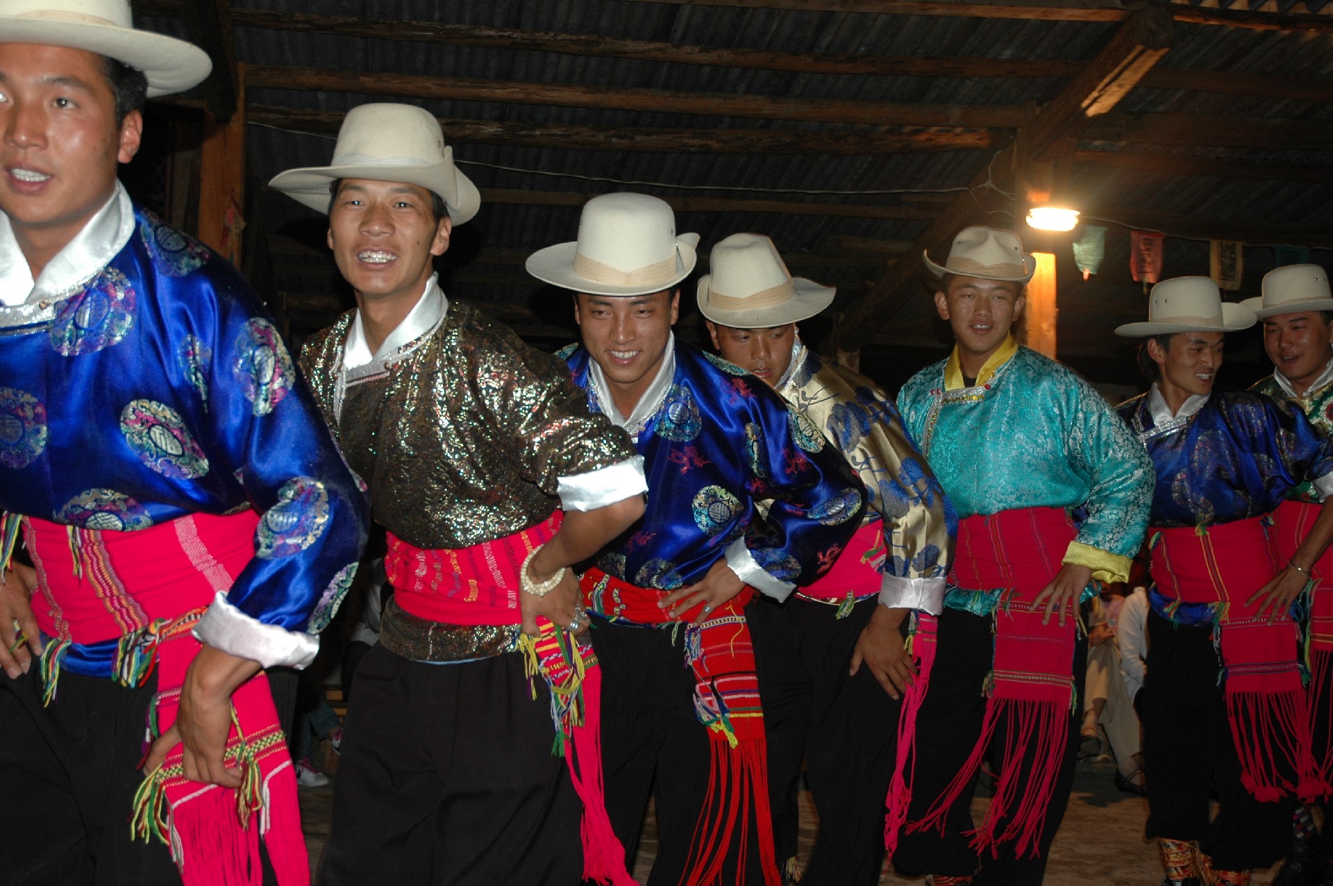 摩梭人的歌曲主要以赞美家乡、赞美母亲、歌颂女人、走婚情歌等为主,曲调阿哈巴拉、玛达咪等。舞蹈以《甲搓舞》为代表,甲搓舞又称打跳或锅庄舞。“甲搓体”意为美好时展的舞蹈,凡有祭祀典礼、红白喜事,过年过节,社交活动,男女青年们相聚一块时,都跳“甲搓舞”。甲搓舞的起源,因为摩梭人无文字,只能是靠口传,无法考证。据说古代摩梭在受到外民族的侵犯袭击时,一天晚上敌人准备偷袭,部落首领发动本族民众,在村口场坝上烧起一堆堆烈火,人们围着熊熊火塘,齐声呐喊跺脚,如地动山摇,制造声势,助长威风直到天亮,敌人看到这种阵势后,败阵而逃,摩梭人取得了胜利,为庆祝胜利,人们围着火塘唱着歌,跳起欢乐的舞蹈。庆祝打退敌人,取得战斗的胜利。于是,“甲搓舞”变成了群体娱乐的广场舞蹈,久而久之,这种舞蹈形式形成人们庆祝丰收、庆贺节日、祈祝神灵的歌舞,也成为青年男女谈情说爱,结交阿夏提供了方便,从而形成打跳“甲搓体舞”,摩梭人只要有高兴的事,大家必定举行“打跳”这一民族民间艺术活动。