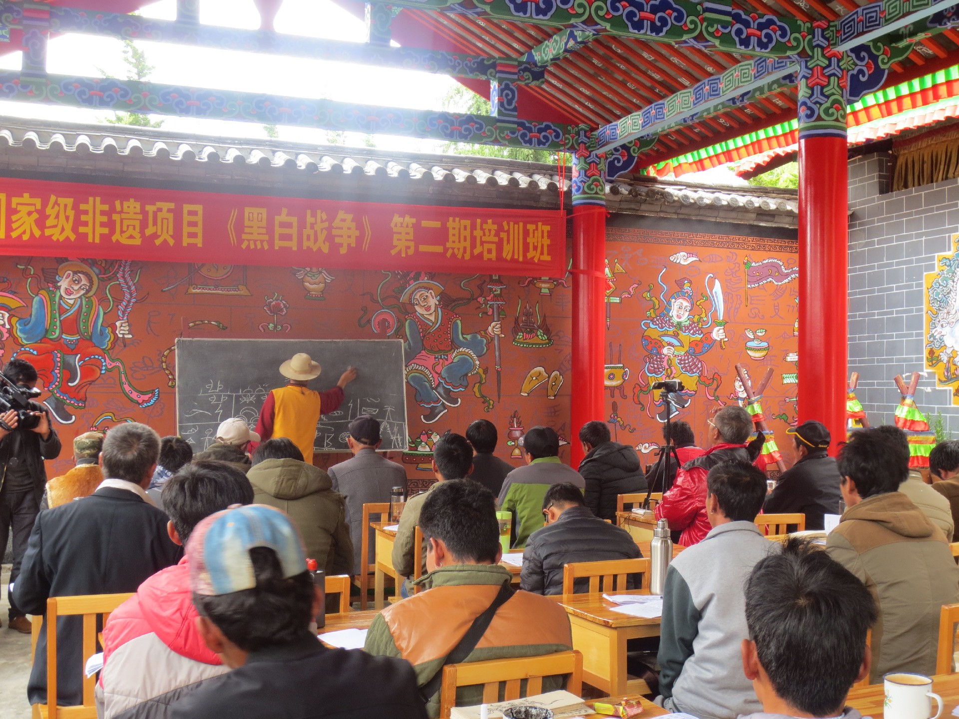 纳西族史诗《黑白战争》是东巴经典三大史诗之一,它描述了一个无比宏大的神话世界,以及神话中纳西族先民创造日月,消灭黑暗,守护光明的英雄史诗。《黑白战争》纳西语称之为“董埃术埃”,黑白为界,天地为家,激烈战争,凄婉爱情。讲述的是宇宙形成之初,天地分为黑白两界,董部落居住在白界,术部落居住在黑界,术部落为争夺董部落的光明引发战争,最终战争以代表光明、正义的董部落战胜代表黑暗邪恶的术部落而告终。《黑白战争》通过为日月星辰而战的英雄故事,表现了古代纳西先民不畏艰难险阻与黑暗邪恶作斗争的英雄气概。作品主题深邃、意境深远、结构恢弘,既不失英雄史诗的魅力与光芒,还热情的歌颂了光明与正义,表达了纳西先民矢志不移地追求、捍卫光明和正义的思想,表现了战争造成的爱情悲剧的哀思,具有深厚的文化积淀和美学思想。同时,东巴经《董埃术埃》(《黑白战争》)东巴祭祀“跺肯”(放替身,送不详物)仪式中使用,但由于历史原因“跺肯”仪式在丽江坝区民间已失传,为此东巴圣地玉水寨联合古城区非遗中心,玉水寨东法师石春为老师,开展了两期《董埃术埃》(《黑白战争》)东巴祭祀“跺肯”仪式传承培训班,每期一个月,培养了来自各地的四十余名“跺肯”仪式民间传承人。2014年被列入国家级非物质文化遗产名录,代表性传承人有和力民、和力川等。